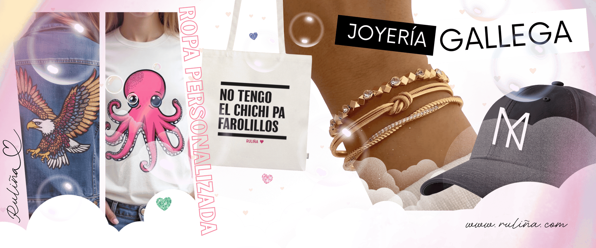 Somos una marca de regalos personalizados y joyas handmade gallega que nace de las ganas de crear cosas nuevas, transformando regalos en cosas únicas y especial, con la magia que caracteriza nuestra tierra gallega. Ruliña es una hermosa expresión gallega que significa "mi tesoro", una palabra cargada de amor y ternura. En Ruliña, nos inspiramos en ese mismo sentimiento para dar vida a cada una de nuestras creaciones, personalizando cada detalle con dedicación y mucho cariño. 💖✨.
