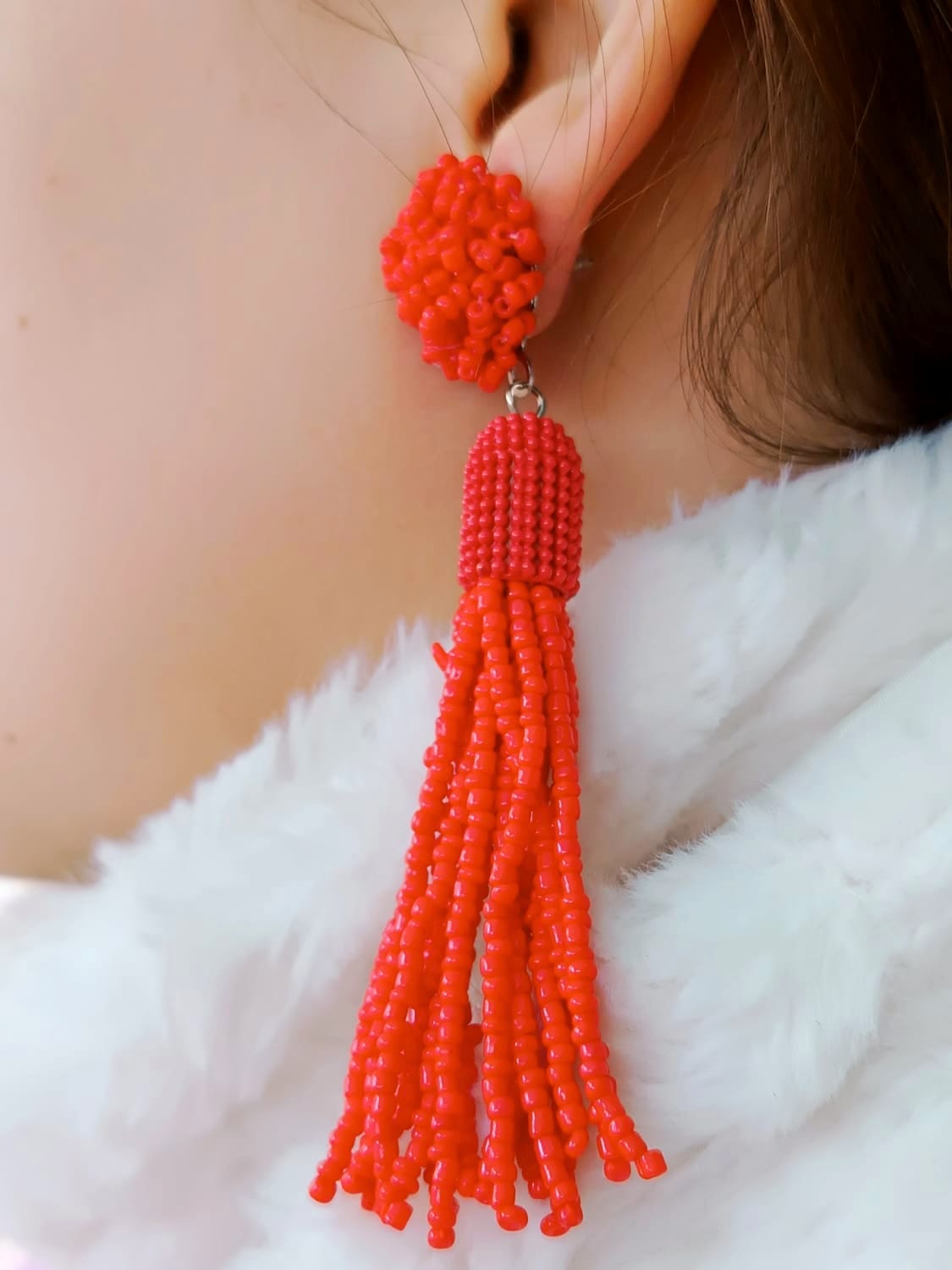 Pendientes largos de abalorios en un vibrante rojo, con un elegante diseño de borla que añade un toque único a cada look. Estos pendientes son el complemento ideal tanto para ocasiones especiales como para darle vida a tu estilo diario. Confeccionados a mano con materiales de alta calidad, garantizan durabilidad y elegancia. Su tamaño es perfecto para no pasar desapercibido, pero lo suficientemente ligeros para usarlos cómodamente todo el día. Realza tu vestuario con estos pendientes vibrantes y sofisticados, ¡un verdadero must-have para cualquier amante de la moda!